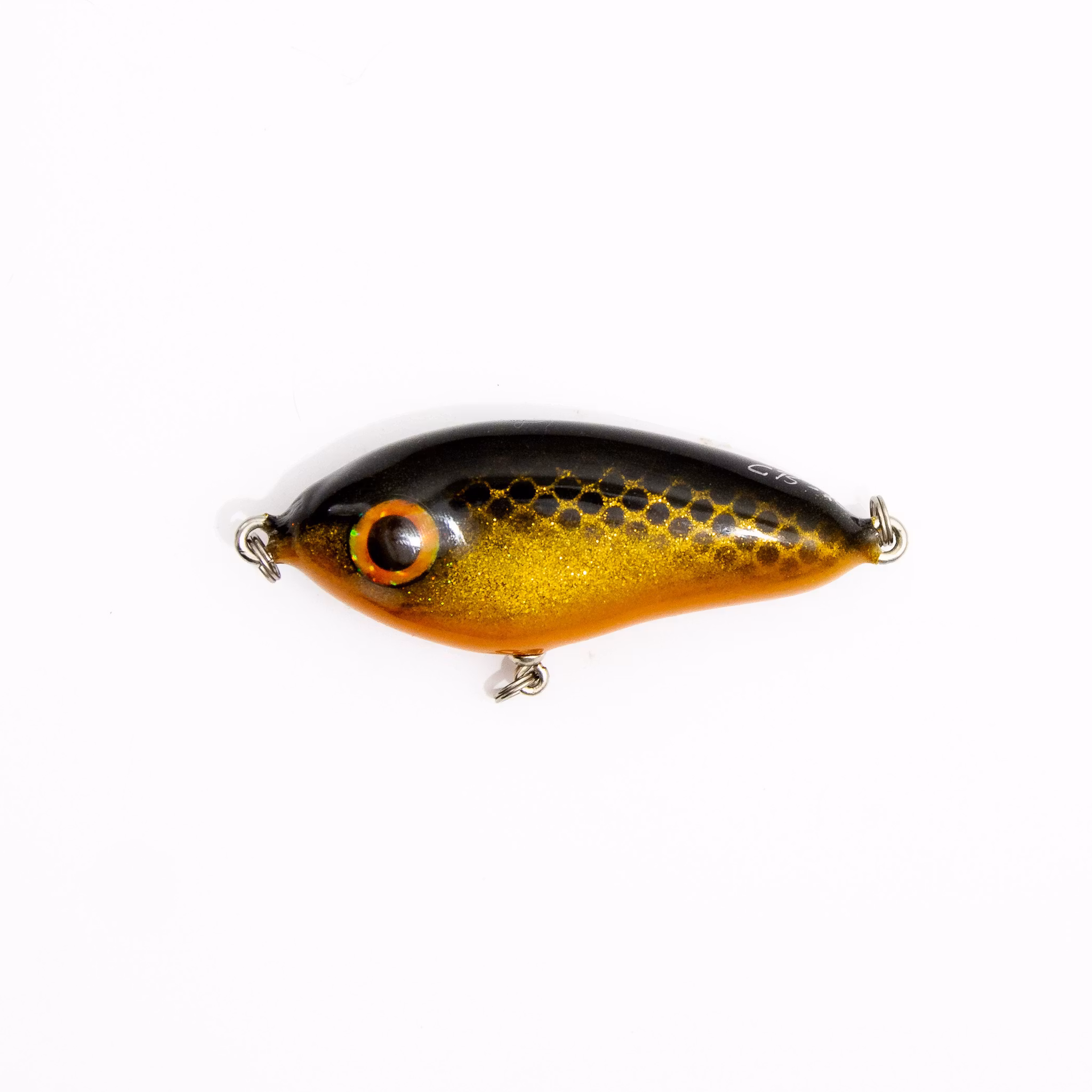 Detta lilla jerkbait/slider väger in på ca 50 gram (OBS! vikten  kan variera då allt är handgjort samt vissa metoder kräver mer lager lack)  och är 11cm från ögla till ögla. Betet är viktat att sjunka lite snabbare än slowsink. Du kan själv laborera med sjunkhastighet genom att byta till  tyngre krok osv.